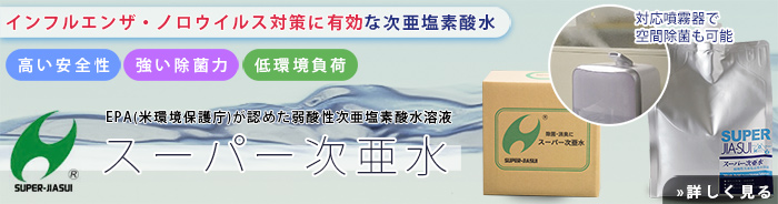 インフルエンザ対策に,除菌力の高い食品添加物「スーパー次亜水」