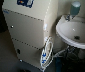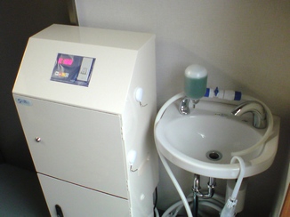 写真から少し切れちゃって見えないのですが、右手前に小さな手洗い水洗があり、その元から分岐して、ステリレボに給水しています。